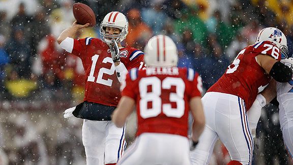 – What can I say about Tom Brady (380 yards, 6 TDs)? This was the kind of day fantasy owners were expecting when they took him as the first QB off the board back in August. He completed 29 passes while the opposing QB, Kerry Collins, went just 2/12 for -7 yards.