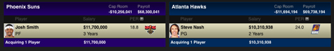 Johnson’s contract makes it tough to trade him and Horford probably has the better (or more stable) future than Smith, so Smith is the odd man out. He’s a very talented player and could be a franchise cornerstone for the Suns if the light ever goes on (and stays on). The trade would leave the Hawks a little thin at power forward, but they could go with Marvin Williams there and play a small-ball lineup of Nash, Jamal Crawford, Johnson, Williams and Horford.