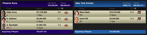The Suns would get cap relief in the form of Eddy Curry’s expiring contract, a forward who can really shoot it in Gallinari, and a wildcard big man (Randolph) who many believe has star potential given the right coach and the right system. The Knicks would get a proven floor leader (Nash) as well as a wing in Hill to help offset the loss of Gallinari.
