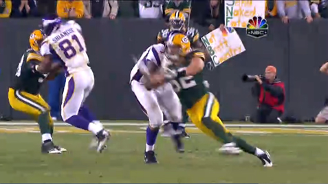 Below are a few screen captures of the facemask call. The first shows Loadholt’s hand in Matthews’ facemask…