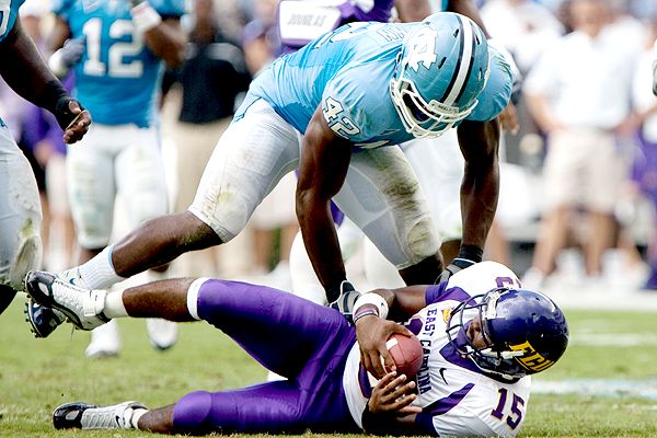 How do the Tar Heels walk into Blacksburg and earn a victory you ask? Well it helps when quarterback Tyrod Taylor starts the game 3-for-9 passing and finishes with only 161 yards and no touchdowns. He was highly inaccurate all night and often put the Hokies in third-and-longs by taking unnecessary sacks instead of getting rid of the ball.