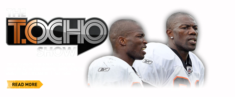 Here’s the format: Former “SportsCenter” anchor and “Entertainment Tonight” host Kevin Frazier is in a Versus studio while T.O. and Ocho sit side-by-side at a studio somewhere in Cincinnati. Frazier asks the guys questions and they take turns responding. Of course, there’s the typical satellite delay awkwardness and at times one guy talks over the other, but for the most part it goes pretty smoothly.